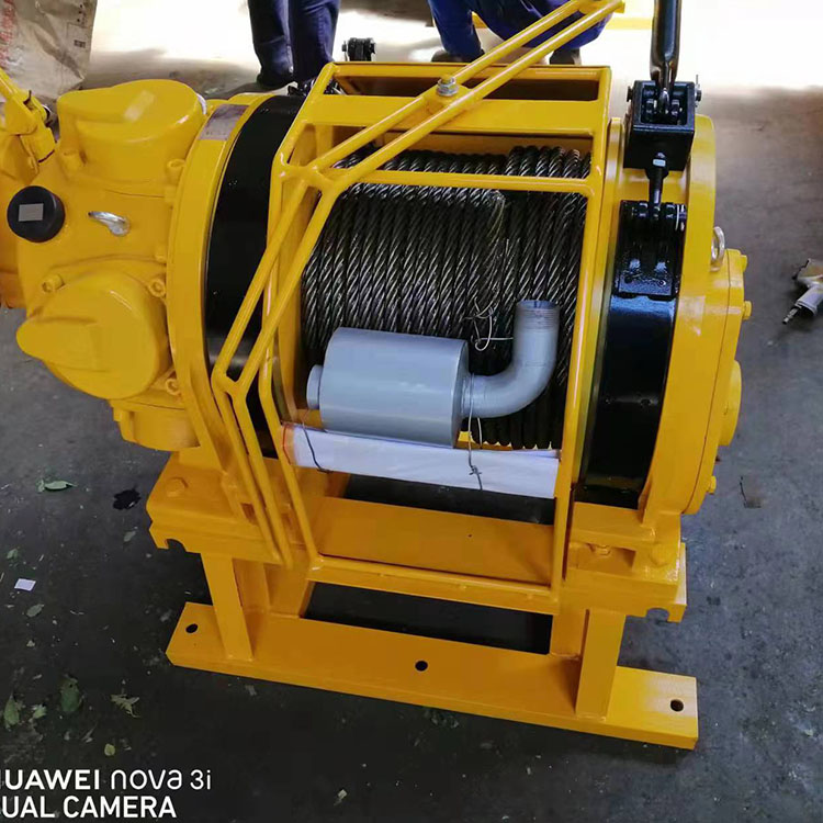 絞車由馬達(dá)總成(氣動(dòng)機(jī))、制動(dòng)器總成、減速機(jī)構(gòu)、卷筒、機(jī)座等主要部分組成。